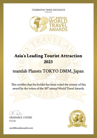 teamLab Planets TOKYO ได้รับรางวัลชนะเลิศ World Travel Awards สาขา “Asia’s Leading Tourist Attraction 2023” (สถานที่ท่องเที่ยวชั้นนำของเอเชียประจำปี 2023)