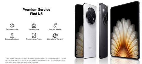 เพื่อรองรับประสบการณ์การใช้งานของผู้ใช้งาน Find N5 ให้ดียิ่งขึ้น ทาง OPPO Service จึงได้เปิดตัวบริการพรีเมียมต่างๆ มากมาย รวมถึงสายด่วน VIP สุดพิเศษ บริการรีเฟรช ช่องทางพรีเมียม และบริการการรับประกันระหว่างประเทศที่ช่วยให้ผู้ใช้เพลิดเพลินกับประสบการณ์ที่ไร้ความกังวล พร้อมทั้งได้รับประโยชน์สูงสุดจากโทรศัพท์สุดล้ำยุครุ่นใหม่นี้