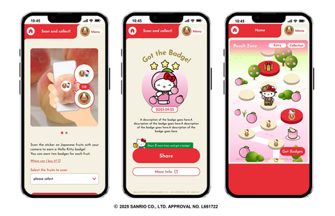 สมาคมเพื่อส่งเสริมการส่งออกผักและผลไม้แห่งประเทศญี่ปุ่น (J-FEC) จับมือกับบริษัท Sanrio Co., Ltd. และ Hello Kitty อีกครั้ง เพื่อเปิดตัวแคมเปญสื่อดิจิทัลเชิงปฏิสัมพันธ์อย่าง “Hello Kitty Japanese Fruit Hunt” โดยผู้เล่นจะใช้สมาร์ตโฟนออกสำรวจสถานที่จริงต่าง ๆ บนโลก ไม่ว่าจะเป็นร้านอาหาร ร้านค้า และโปรโมชันมากมายที่มีป้าย “Japan-Grown Fruit” 2เมื่อสแกนป้ายด้วยสมาร์ตโฟน ผู้เล่นจะได้รับเหรียญดิจิทัลและร่วมผจญภัยล่าสมบัติไปกับ Hello Kitty เพื่อค้นพบความสดและเสน่ห์ของผลไม้จากญี่ปุ่นด้วยประสบการณ์ที่ไม่เหมือนใคร
